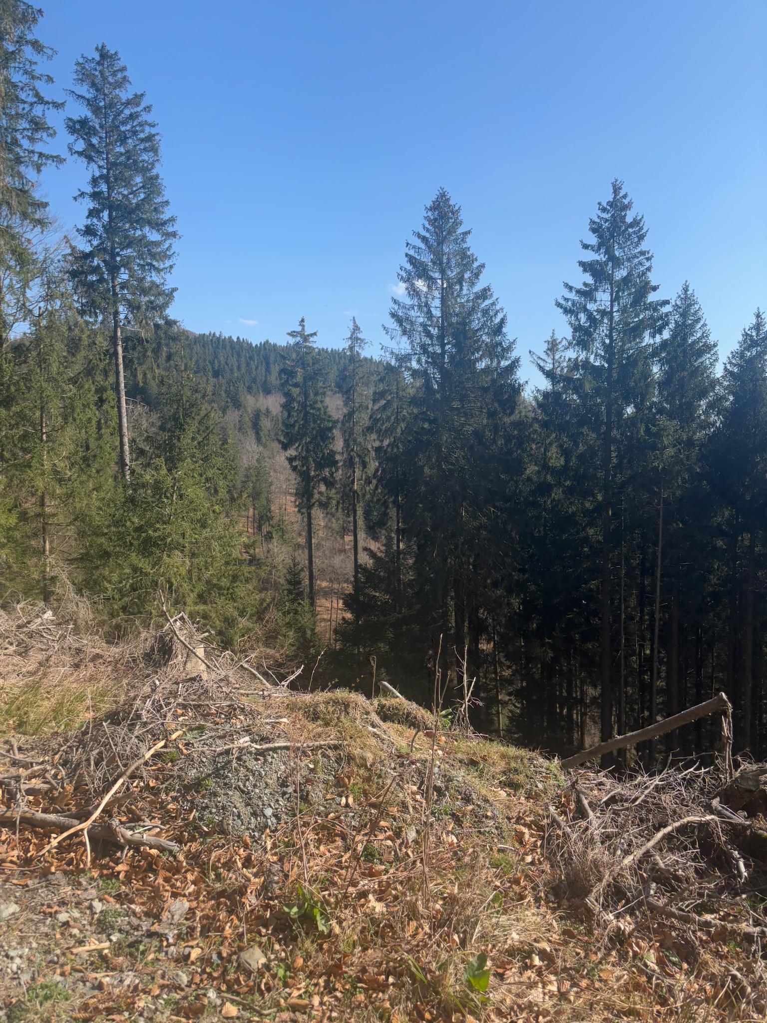 - Bestand: Mix aus Fichten (60–70 Jahre), älteren Buchenbeständen und natürlichen Sukzessionsflächen.