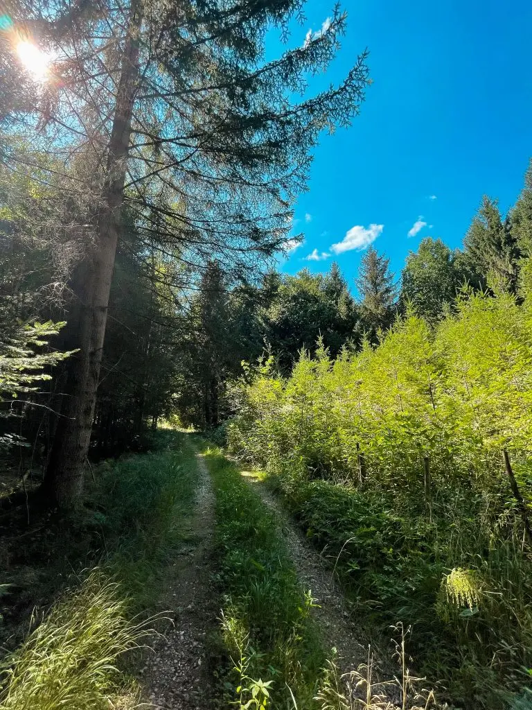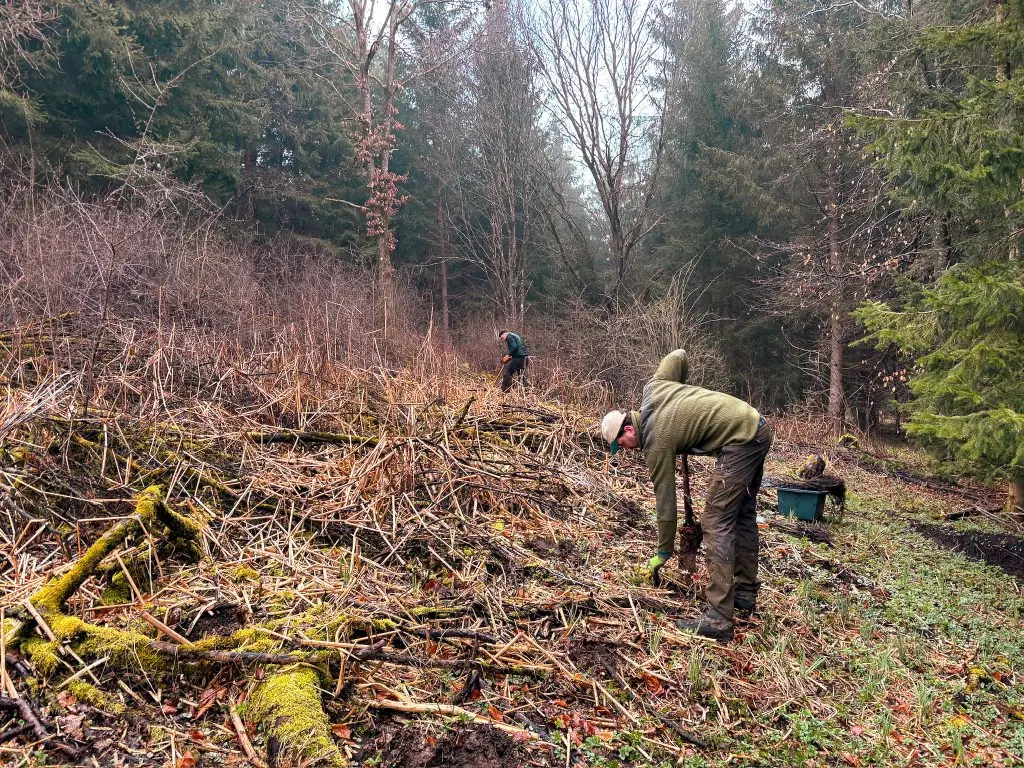 Der aktuelle Bestand umfasst rund 6 Hektar Fichten (30-35 Jahre alt). Ergänzend finden sich Laubholzgruppen aus Stieleiche, Bergahorn und Rotbuche. Die Herausforderung: Im östlichen Teil sind Lücken durch Standortbedingungen entstanden. Wir setzen gezielt auf klimaresistente Baumarten wie Stieleiche und Rotbuche, um die Biodiversität zu fördern. Gesunde Böden und standortgerechte Bäume sorgen dafür, dass sich der Wald optimal an veränderte Klimabedingungen anpassen kann.